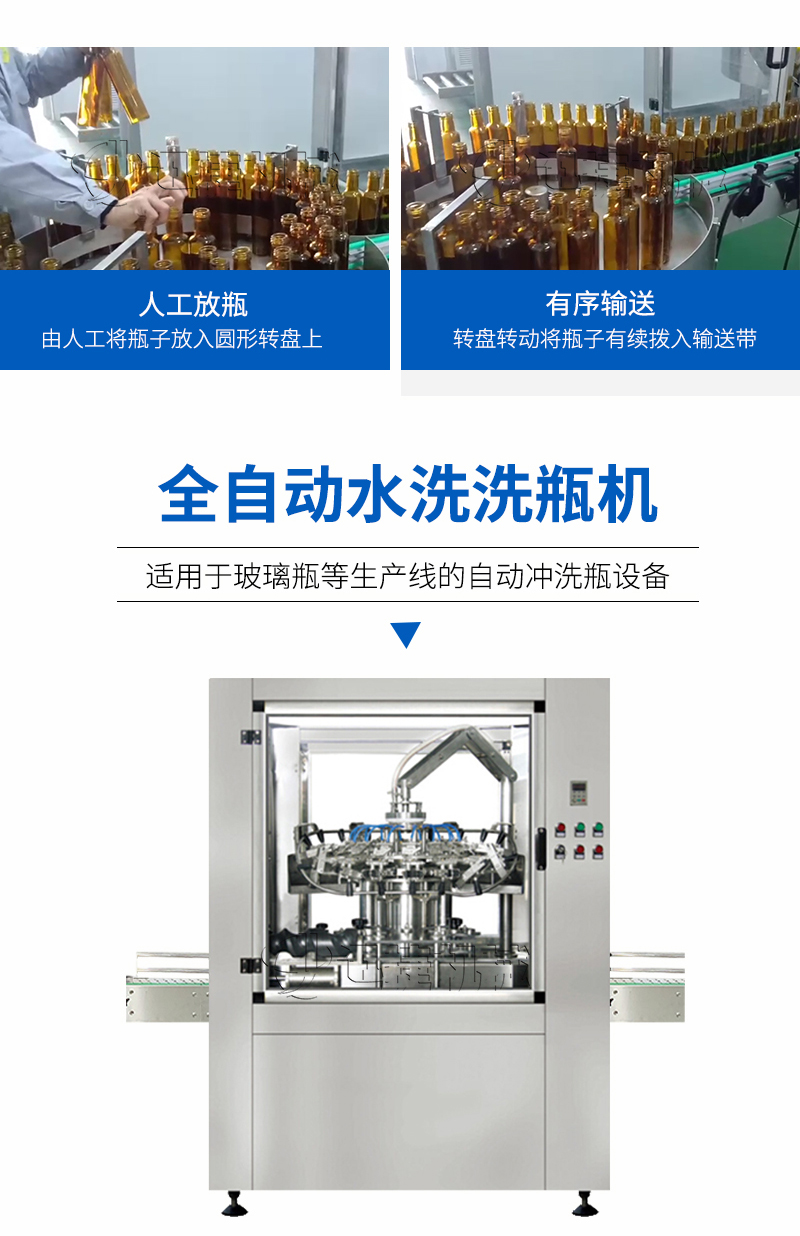 1. 本機(jī)主要用于玻璃瓶和聚脂瓶在灌裝前的清洗和殺菌,適用于刷洗后灌裝前瓶子的沖洗。