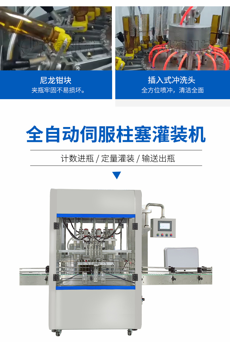 1、該灌裝機(jī)可完成不同瓶型的自動(dòng)定量、自動(dòng)灌裝、自動(dòng)出瓶,專業(yè)灌裝各種液體及粘流體,采用防滴漏與拉絲的灌裝悶頭、防高泡產(chǎn)品的灌裝升降系統(tǒng)、確保瓶口定位的定位系統(tǒng)和液位控制系統(tǒng);
